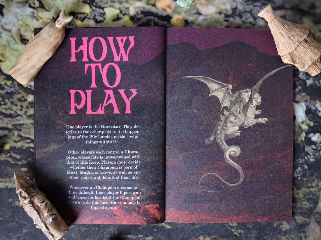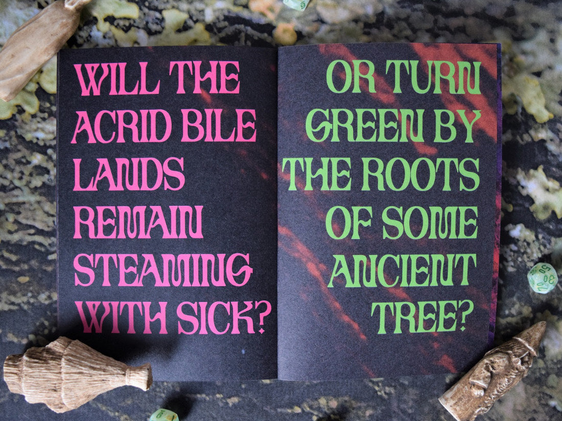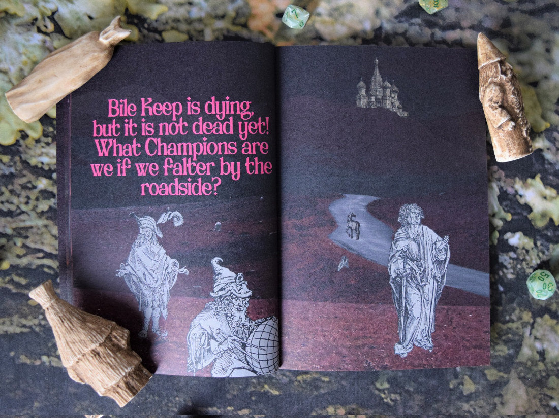 The Lords of Bile Keep is a slime-drenched adventure zine set in the acrid bile lands, where you will come upon goblins, witches, gargoyles and more! The land's fabled Bile Keep has stopped pumping slime into the earth, while the Bile Lords remain silent in their citadel! What ill fate has befallen them, for all their lands to crack and dry? This adventure and setting guide for CYST has all you need to venture out into the sick-stained bogs, including 6 new Character Backgrounds, new encounter tables, and an entire adventure up to Bile Keep, and down into the deepest bowels of Mother Earth...